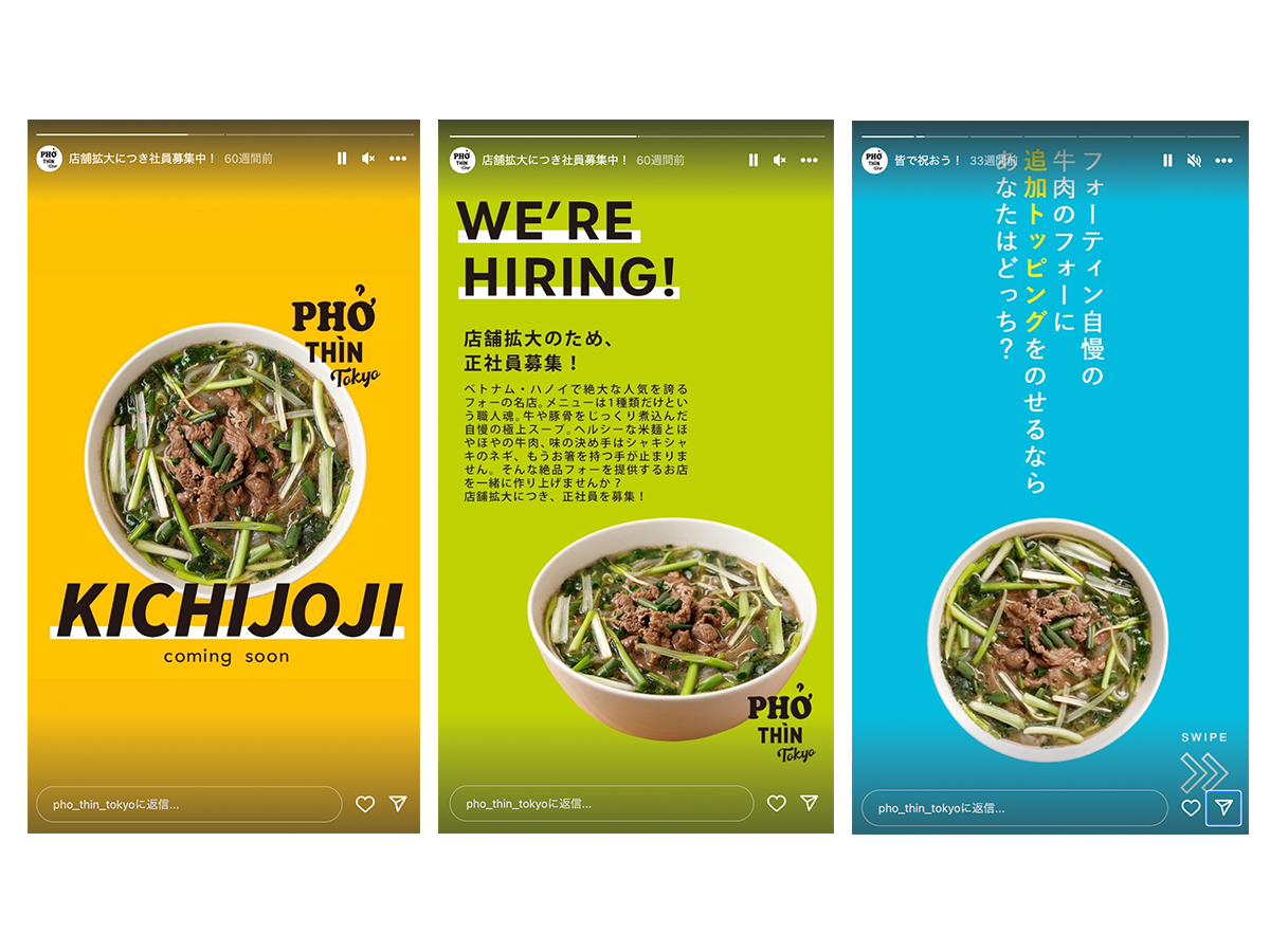 2023年、フォー専門店「PHO THIN TOKYO」が吉祥寺に新店舗を開店する際に、SNSキャンペーンを担当しました。オーガニック投稿と広告の両方を実施しています。